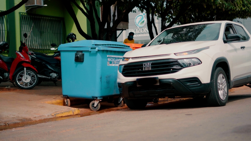 Parar em frente aos contêineres de lixo atrapalha a coleta e pode gerar multa, segundo o Código de Trânsito Brasileiro