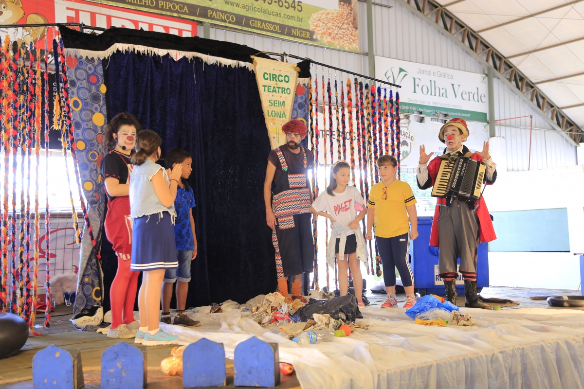 A programação aconteceu no Centro de Eventos Roberto Munaretto e contou com brincadeiras, palestra com a engenheira sanitarista e ambiental, Renata Grasel, e apresentação com o Circo Teatro Sem Lona.