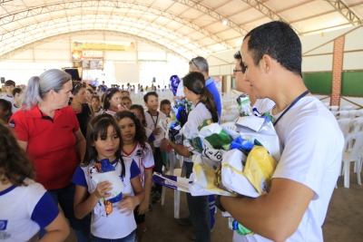 Ao final do evento, as crianças foram presenteadas com um estojo ecológico confeccionado com reaproveitamento de material utilizado em banners.